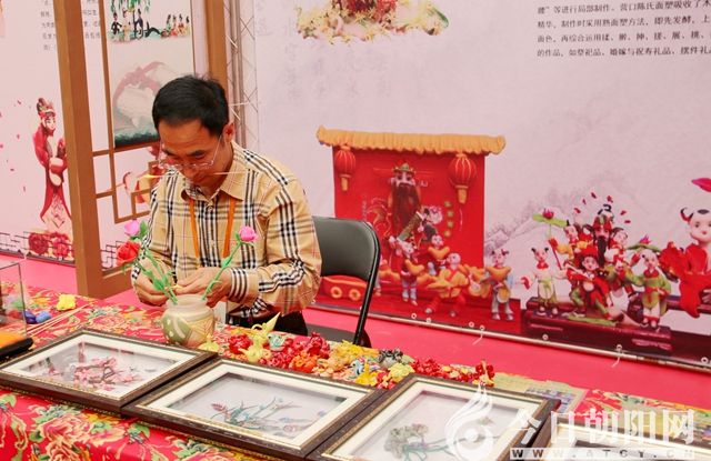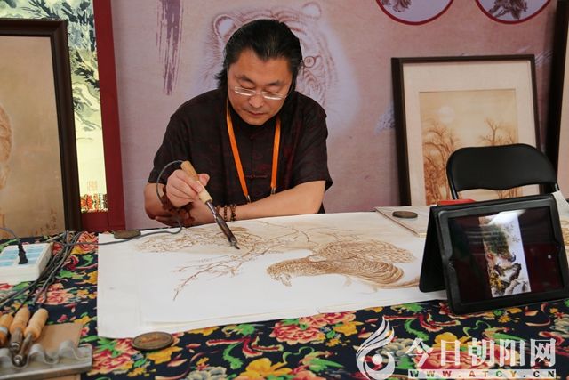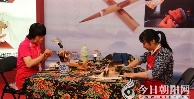 《今日朝陽(yáng)網(wǎng)》小編在現(xiàn)場(chǎng)看到,來(lái)自各地參展的非物質(zhì)文化遺產(chǎn)種類繁多,風(fēng)采獨(dú)具,星光熠熠。諸如:來(lái)自山西長(zhǎng)治的史延林傳統(tǒng)彩畫壁畫、來(lái)自桓仁的版畫、來(lái)自喀左縣的紅山泥人紫砂陶藝雕塑、來(lái)自朝陽(yáng)的燕派烙畫藝術(shù)、來(lái)自喀左的北陶紫砂、來(lái)自朝陽(yáng)的女神絨繡藝術(shù)、來(lái)自北票市的藝宏齋玉米皮烙畫、來(lái)自丹東市晶濤景泰藍(lán)文化產(chǎn)業(yè)有限公司的藝術(shù)品、來(lái)自朝陽(yáng)縣黑牛營(yíng)子鄉(xiāng)的遼繡、來(lái)自營(yíng)口的高氏木浮雕,以及金鼎玉雕、御用工坊、錦州面人張、振聲影雕、陳煥升琥珀雕刻、鐵石齊印譜、岫巖滿族剪紙等等文化、藝術(shù)精品,可謂琳瑯滿目、神采各異、美不勝收。