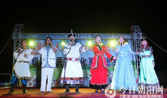 當(dāng)日晚7點(diǎn)整,文藝演出正式開始。來自喀左縣民族文工團(tuán)的演員們和當(dāng)?shù)厝罕娬媲榛?dòng),演繹了一個(gè)個(gè)精彩的節(jié)目。10多個(gè)節(jié)目涵蓋了蒙古族長調(diào)、才藝脫口秀、快板、舞蹈、歌曲、馬頭琴演奏等多種藝術(shù)形式。整場演出精彩異常,旋律時(shí)而舒緩悠揚(yáng),時(shí)而鏗鏘有力。既有民族風(fēng)情濃郁的《永遠(yuǎn)的那達(dá)慕》、《陪你一起看草原》、《民族頌歌》等節(jié)目,也有具有地域特色的舞蹈《大地放歌》等;既有著名評書表演藝術(shù)家劉蘭芳親傳弟子許同貴的專業(yè)表演,也有松嶺門鄉(xiāng)群眾原汁原味的藝術(shù)呈現(xiàn)。