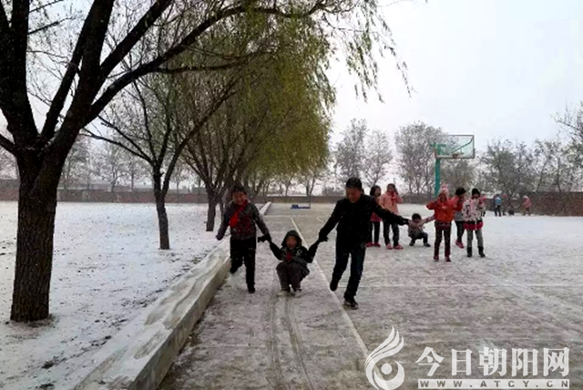 “潔白的雪花飛滿天,白雪覆蓋我的校園。漫步走在這小路上,腳印留下一串串。有的直,有的彎,有的深,有的淺......”記憶深處的校園歌曲《腳印》音猶在耳,可我已經沒有了那份在雪中狂奔的心性,只是站在窗前,看孩子們在雪中快樂地玩耍——他們圍著校園里的垂榆繞圈圈,踩雪道;他們腳跟相對成“V”字形踩“拖拉機”印兒,他們拿小搓子收,用手捧,集了雪堆雪人,給雪人戴上自己的帽子、紅領巾、讓雪人斜挎著笤帚當做樂器,有的把自己的紅橡皮當做雪人的紅鼻子,有的找兩個煤球做雪人的眼睛......在孩子的世界里,雪地上的想象是無窮無盡的。你看那邊,不是有孩子用雪地做畫紙,拿根樹枝在畫畫嗎?畫得一絲不茍,畫得手舞足蹈,畫得得意忘形。