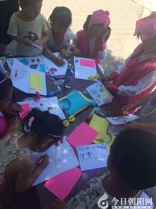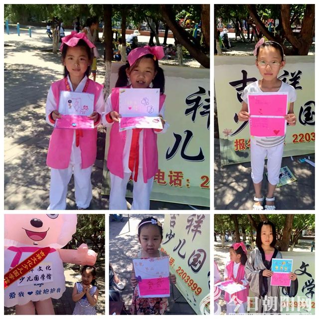 2015年6月21日,正值父親節(jié),遼寧朝陽吉祥文化少兒國學(xué)館在朝陽人民公園舉辦了一場“感恩父親節(jié)”大型活動。20多個孩子自己動手制作了賀卡等小禮物,然后獻(xiàn)給自己的父親。