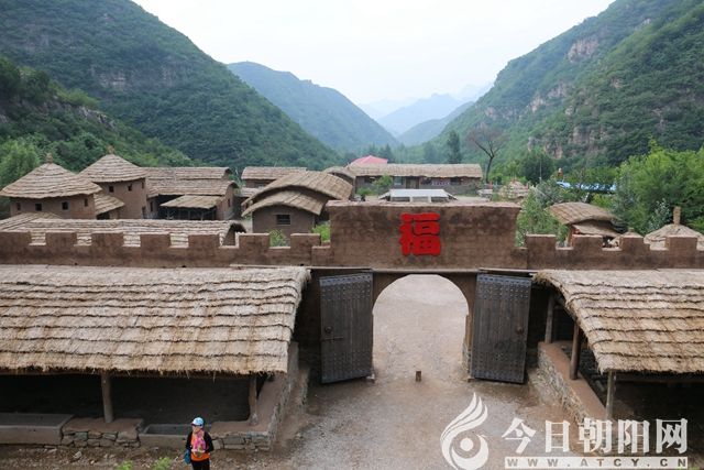 經(jīng)過簡單的休整,我們一行人正式向影視基地進(jìn)發(fā)。走過一段長長的柏油路后,終于漸次看到木頭搭建的房子,低矮的馬棚,長方形的比武臺,以及棧道、糧草堆、石碾等建筑物或設(shè)施,讓人感覺很新鮮。