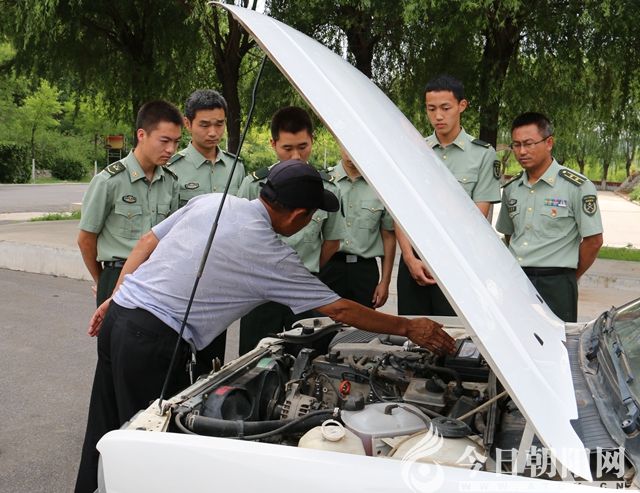 此次活動的目的只有一個,就是為了方便兵哥哥們學習汽車駕駛技術(shù)。為確保學習效果,朝陽工校駕校的教練們以科學嚴謹?shù)膽B(tài)度,專門為這些軍人劃定了練車線道。炎熱的天氣,絲毫沒有影響到兵哥哥們學習駕駛技術(shù)的熱情,他們熱切、認真地傾聽駕校王教練和羅教練的精彩講解。只見教練一邊打開汽車的前車蓋,一邊講解有關(guān)知識,兵哥哥們整齊有序、英姿颯爽地站在一旁,神情特別專注。