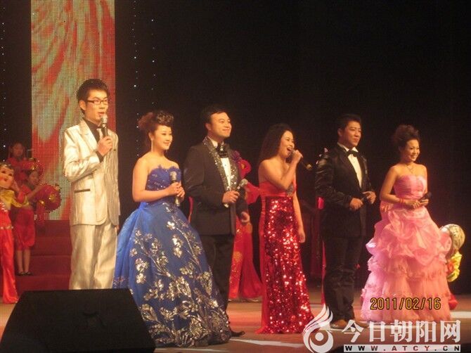 左一為盧奕蘅大三時(shí)回家鄉(xiāng)主持北票元宵晚會(huì)