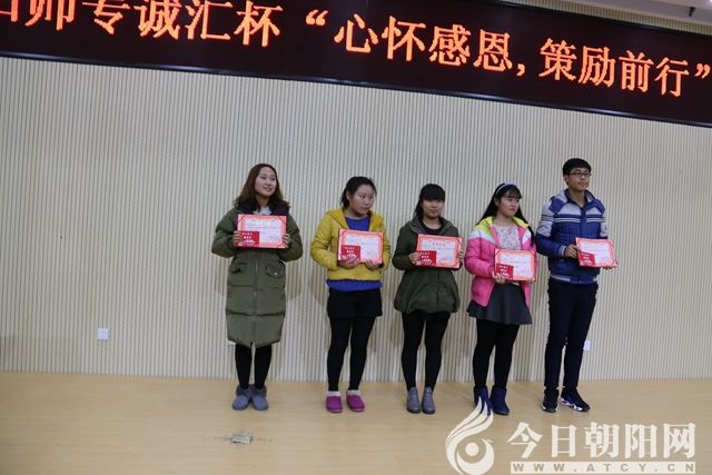 2015年11月26日,是一年一度的感恩節(jié),也是遼寧省朝陽師專以“心懷感恩·策勵前行”為主題的征文活動圓滿結(jié)束的日子。在這樣一個特殊的日子里,師專學(xué)子們心懷感恩,參加了簡樸厚重的頒獎儀式。