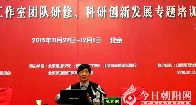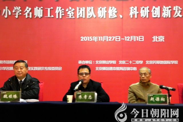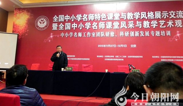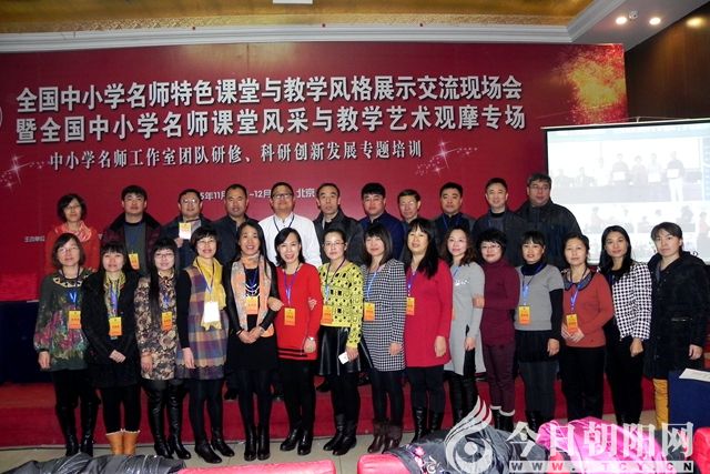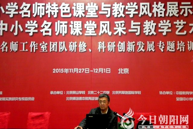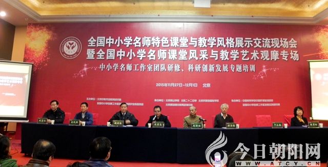 2015年11月29日上午,首都北京,一如往常的繁華亮麗。由北京中教市培教育研究院、全國(guó)中小學(xué)名師工作室發(fā)展實(shí)踐研究專(zhuān)家委員會(huì)聯(lián)合主辦,北京市景山學(xué)校、北京二十二中學(xué)、北京芳草地國(guó)際學(xué)校、北京市培德本教育咨詢(xún)中心承辦的“全國(guó)中小學(xué)名師特色課堂與教學(xué)風(fēng)格展示交流現(xiàn)場(chǎng)會(huì)暨全國(guó)中小學(xué)名師課堂風(fēng)采與教學(xué)藝術(shù)觀摩專(zhuān)場(chǎng)”在北京京天明天酒店隆重開(kāi)幕。來(lái)自全國(guó)二十多個(gè)省市的教育行政負(fù)責(zé)人、教育科研人員、中小學(xué)校長(zhǎng)、名師工作室成員共計(jì)1000余人參加了本次論壇。來(lái)自遼寧省朝陽(yáng)市的30位名師,在朝陽(yáng)市教育局、朝陽(yáng)市教師進(jìn)修學(xué)院的組織下,以飽滿(mǎn)的精神狀態(tài)參加了這次盛會(huì)。