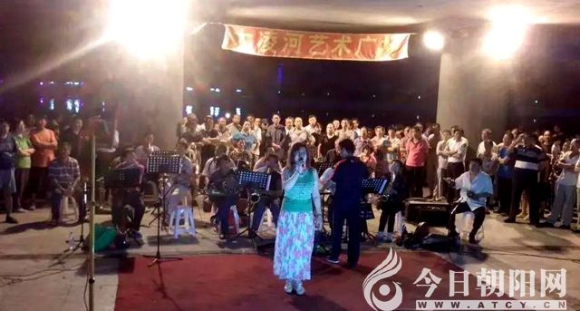 饒有趣味的是,晚會彩排現(xiàn)場不在高雅的舞臺,也不在寬敞的廳堂,而是選在麒麟大橋橋下的空地上。這里,每天都有大量的市民來此解暑納涼、徒步健身,絕對是一個接地氣的地方。更惹人眼球的,是寫有“歌唱祖國,贊美家鄉(xiāng),老百姓音樂廣場”、“大凌河藝術(shù)廣場”字樣的2個條幅,在晚風中搖曳、飄舞。