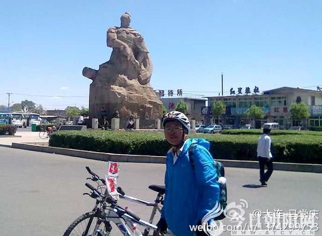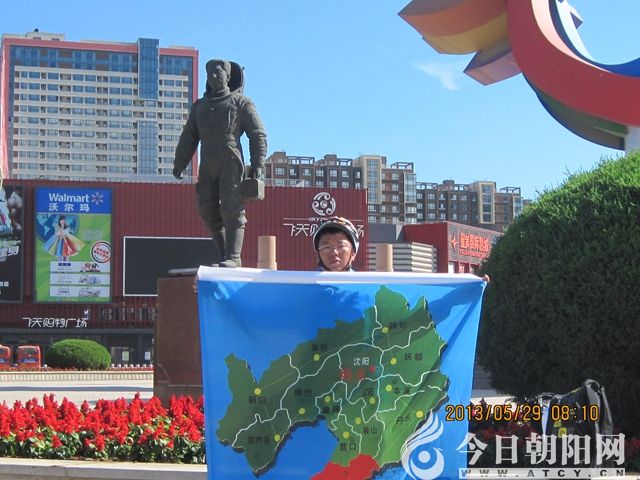 2013年5月29日,騎行進(jìn)入第11天,我們也將在這一天,踏上家鄉(xiāng)朝陽(yáng)的土地,令我激動(dòng)而興奮。早上6點(diǎn)多鐘,吃過(guò)早餐,我們開(kāi)始新一天的騎行,并在郵局開(kāi)門的第一時(shí)間蓋上“葫蘆島”的印記。我們還了解到,就在附近,有“飛天廣場(chǎng)”,這絕對(duì)是葫蘆島的代表性地標(biāo),我們一定要去參觀一下,感受飛天第一人帶給城市、帶給中國(guó)人民的榮耀與自豪。
