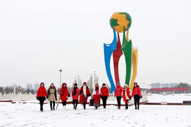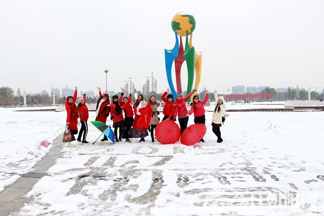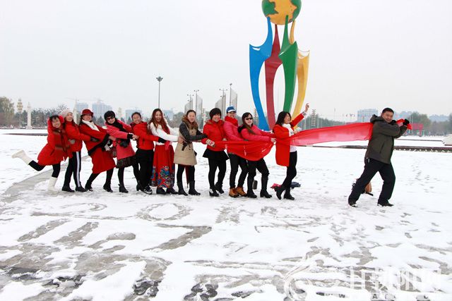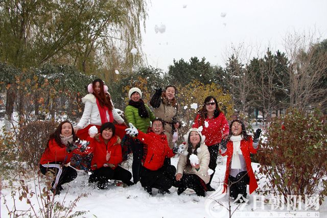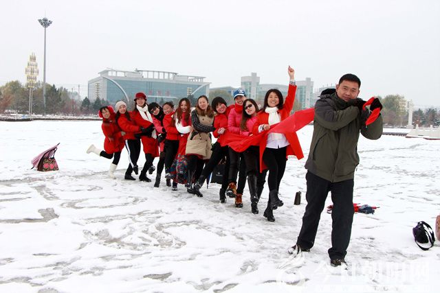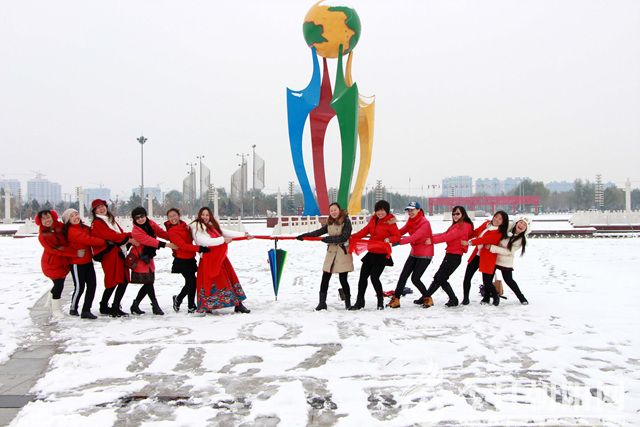2015.11.07,初雪,漫天飛舞的雪花,總?cè)菀鬃屓烁袆?dòng),一篇文章里說,人不快樂的原因之一,就是對(duì)美好的事物不再心懷感動(dòng)。還好,我們紅館的女人們,每天在音樂和舞蹈的熏染下,對(duì)美好有了更深層次的理解和感悟,那些美感,已經(jīng)滲入細(xì)胞,所以,當(dāng)?shù)谝粓鲅?轟轟烈烈的降臨,我們已經(jīng)被感動(dòng)得開開心心。飛舞的雪花潔白輕盈,不約而同的裝扮讓我們變成了玫瑰花一樣的女人,在潔白的世界里,恣意炫目地綻放。我愿意看她們的笑容,清亮的眸子,因興奮而微紅的臉龐,在一片一片紛揚(yáng)的雪花兒里,分外嬌艷。人說,幸福的女人,是一眼就看得出來的,她們像個(gè)孩子一樣,喊著鬧著跳著玩兒著,把一場雪,都看作一場浪漫的童話,滿足的快樂著,我覺得,紅館的女人,都是幸運(yùn)又幸福的。
