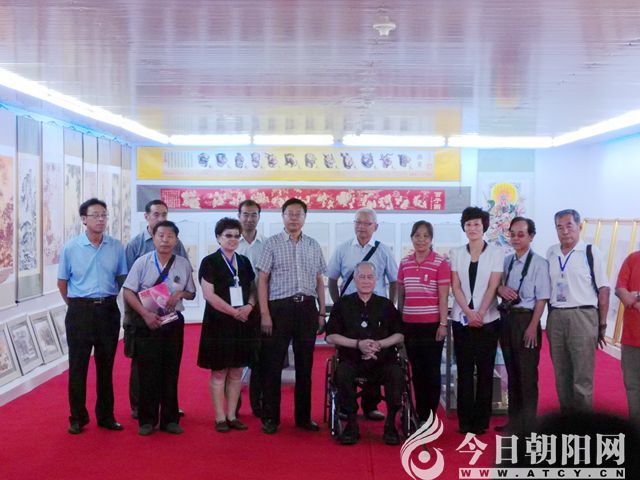 海峽兩岸紅山文化參訪團部分成員在建平國美剪紙公司留影(王鑫提供)