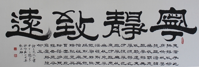 張琮松是一位嚴(yán)謹(jǐn)、勤奮的書法家,他在秉承傳統(tǒng)文化的道路上踏踏實實地耕耘。他主攻隸書,兼帶小篆,尤擅金粉漢隸;他外師造化,守意修定,中得心源。“勻凈、寧靜、干凈”構(gòu)成了張琮松金粉隸書和金粉小篆的三大特色。細(xì)品他的書作,字字皆禪意,宛若走過紅塵阡陌,修籬養(yǎng)菊,靜觀紅鯉白蓮·····