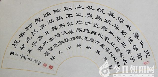 書之妙道,神采為上。品高則下筆妍雅,不落塵俗;胸中有道義,廣納圣哲之學(xué),書乃可貴。張琮松深諳個中奧妙。他在經(jīng)文創(chuàng)作中,以姿取勢,以意造境,以形立神,做到虛實相生,剛?cè)嵯酀?jì),動靜結(jié)合,心正氣和,字里行間滲透出了國人中和、自然、空靈的傳統(tǒng)美學(xué)思想。應(yīng)該說,張琮松金粉隸書作品是當(dāng)今書壇之經(jīng)典妙品,彰顯的中華傳統(tǒng)文化的深厚底蘊和禪宗思想的博大精深。作為“天地一隸”的稱謂,雖有溢美之嫌,但他虔誠的守望,忘我的境界,必將在當(dāng)代中國書壇留下自己獨特的心痕印跡。