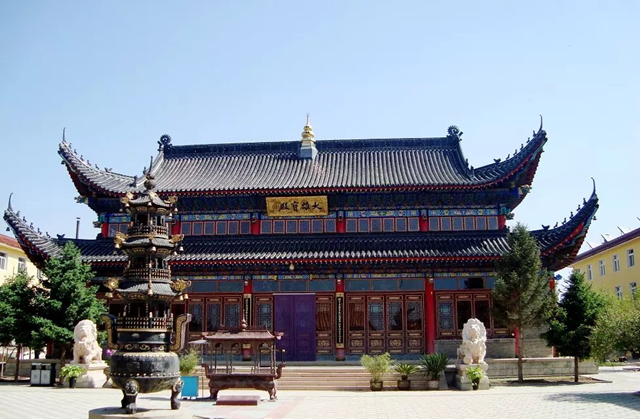 惠寧寺殿角凌霄已經(jīng)在望。右轉(zhuǎn),上坡,我把車子停在惠寧寺天王殿前的大石獅子后面時,正好九點。從我家到龍城區(qū)召都巴惠寧寺約20KM,小上坡路,用時80分鐘。