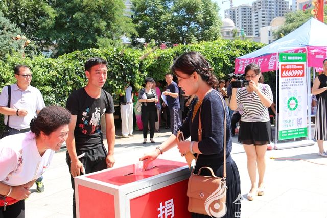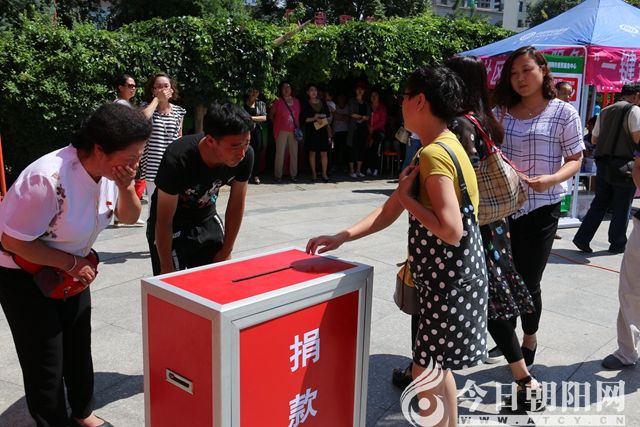 蘇大姐落淚的現(xiàn)場(chǎng),在朝陽(yáng)市政府門前的公共游園。此刻,一場(chǎng)主題為“黨群攜手·愛心圓夢(mèng)”的義演義捐義賣獻(xiàn)愛心活動(dòng)正在進(jìn)行?;顒?dòng)由朝陽(yáng)市雙塔區(qū)光明街道黨工委主辦,“蘇大姐愛心志愿者團(tuán)隊(duì)”承辦,吸引了朝陽(yáng)市便民服務(wù)中心等眾多單位、市民參加。