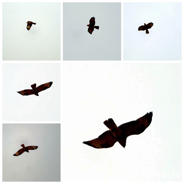 我曾在大凌河岸邊,欣賞過(guò)紅嘴藍(lán)鵲那美麗的長(zhǎng)長(zhǎng)的緞帶般的尾羽,聽(tīng)過(guò)四聲杜鵑動(dòng)聽(tīng)的歌聲,欣賞過(guò)戴勝鳥(niǎo)頭上色彩斑斕的羽冠,太平鳥(niǎo)紅黃相間的花尾巴,可是那時(shí)都是轉(zhuǎn)眼即逝。今天卻不同,一只猛禽,長(zhǎng)時(shí)間的徘徊,氣勢(shì)兇猛,但并沒(méi)有襲擊人的意思。通過(guò)近距離地與這只鷹接觸,使我真正體會(huì)到了人與自然如此得和諧。