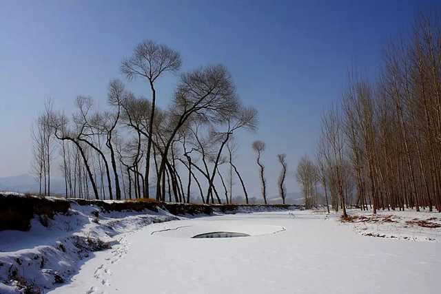 兒時(shí)的記憶里,冬天這個(gè)字眼總是和雪密切相聯(lián)。那時(shí)的冬天感覺(jué)特別冷,雪也特別多。整個(gè)冬天,棉絮似得大雪一場(chǎng)接一場(chǎng)的下。村莊、樹(shù)木、田野都籠罩在一片白茫茫的世界里。特別是到了冬至以后,下的雪尤為頑固,不到來(lái)年開(kāi)春是不會(huì)融化的。人們常說(shuō):三九天的雪賽如鐵。這話一點(diǎn)不假。一場(chǎng)雪剛剛鋪滿(mǎn)地面,另一場(chǎng)雪又接踵而至。層層疊疊積壓到一起,就有幾尺厚。鄉(xiāng)親們除了在每日必經(jīng)之路掃出一條條縱橫交錯(cuò)的小道之外,其他地方的雪會(huì)靜靜地在地上安眠過(guò)冬。只是偶爾有幾朵梅花般的印痕一連串的走向遠(yuǎn)方。橫七豎八的還會(huì)多出許多枝杈型的喜鵲和麻雀的腳印。而遠(yuǎn)處的田野在陽(yáng)光的照射下,一冬天都是耀眼的白……