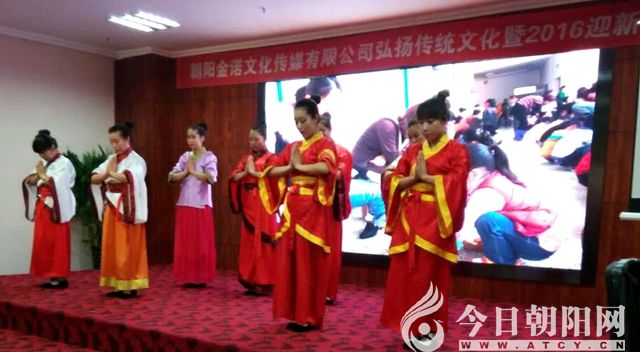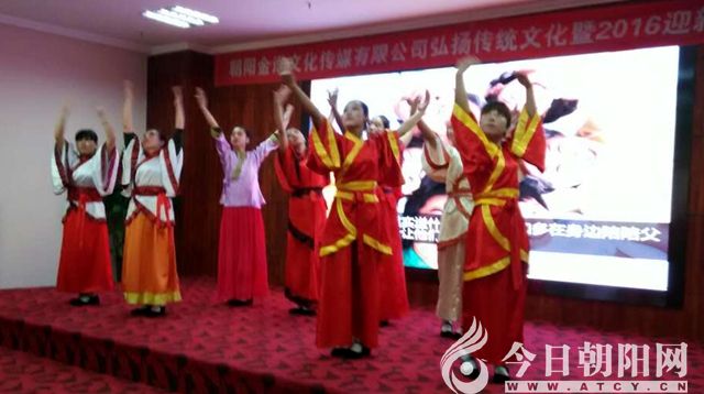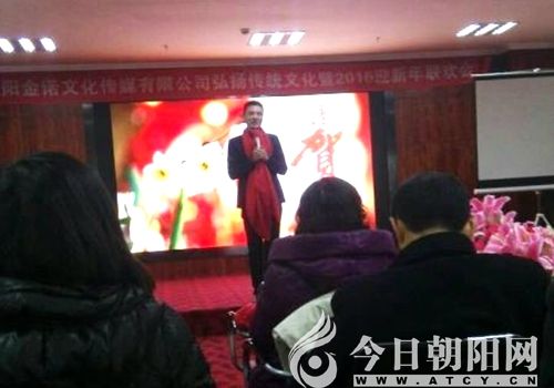 2015年12月28日下午,在遼寧省朝陽市朝陽金諾文化傳媒有限公司隆重舉辦了一場“朝陽金諾文化傳媒有限公司弘揚傳統(tǒng)文化暨迎新春聯(lián)歡會”。參加本次活動的有朝陽金諾文化傳媒有限公司的全體職工,來自愛尚家居、怡然廣告公司等十多個企事業(yè)單位的法人代表、社會各界人士、傳統(tǒng)文化老師以及鐘愛傳統(tǒng)文化的善男信女等百余人。