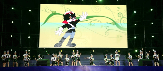 ——童趣盎然。既然是少兒節(jié)目,就要張揚(yáng)童心童趣。《飛蹄聲聲》、《娃娃兵,兵娃娃》、《我愛地球》、《“兔”氣揚(yáng)眉》等節(jié)目,彰顯出童話般的幻想與美麗;《新學(xué)堂歌》更是根植于中華傳統(tǒng)文化的厚土,借助舞蹈的肢體語(yǔ)言,演繹了唐詩(shī)宋詞優(yōu)美的意蘊(yùn),引導(dǎo)孩子們將理想伸向遼闊的天空。舞蹈串燒《小貓咪》、《黑貓警長(zhǎng)》、《小蘋果》讓觀眾忍俊不禁,拍手稱快。