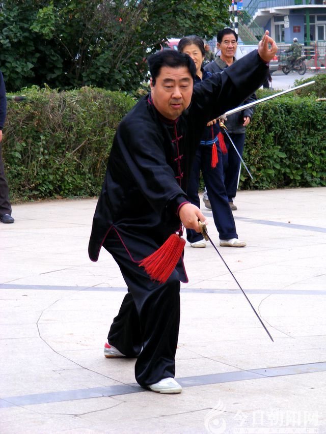 鄒本海早在朝陽市區(qū)“五一街”住時(shí),開始在南塔邊自己練,漸漸地吸引了想學(xué)太極拳和太極劍的人,熱心腸的他便義務(wù)地教了起來,來學(xué)的人也越來越多,各行各業(yè)的人士都有。4年前他搬到新客運(yùn)站附近居住,換了運(yùn)動(dòng)場(chǎng)地,人生地不熟,開始都是自練,練來練去又有人上心了,由開始看他練到主動(dòng)找他教,他總是來者不拒,認(rèn)為只要大家愿意學(xué),達(dá)到全民健身的目的就行。教了一段時(shí)間,大家看他辛苦,提出他應(yīng)該收點(diǎn)學(xué)費(fèi),或請(qǐng)他吃飯,他都一一拒絕了,他說:“你們別請(qǐng)我吃飯,我?guī)湍銈兂龊咕托?,要給錢就不教了。”所以來學(xué)的人越來越多,學(xué)員來自各行各業(yè),有離退休的、有在職的,有法人代表,有個(gè)體工商戶,年紀(jì)最大的79歲,最小的30多歲,現(xiàn)在已發(fā)展到50多人,經(jīng)常堅(jiān)持練的有20多人。