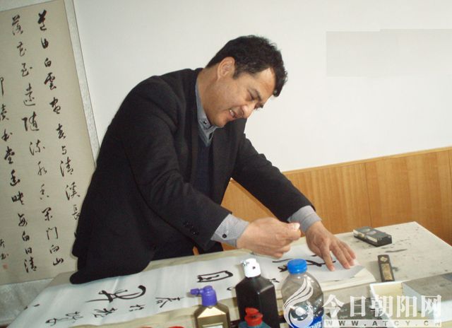 因工作需要,1990年9月劉喜鵬被調到朝陽縣計生委從事公文寫作。到城里工作后,他有機會接觸到了書法方面的名家,便不失時機地向名家請教。練書法需要較大的經濟投入,當時妻子下崗,一對雙胞胎子女生活需要開銷,家庭生活比較困難。面對租住的幾間低矮的平房,劉喜鵬徘徊在是堅持還是放棄書法的十字路口。此時,同學好友孟慶冰、徐文忠資助他,葛忠、荀潤江等老師鼓勵他,使他度過了困境。后來,承蒙領導的提攜和信任,他相繼走上縣計生委辦公室主任、縣計生局副局長的工作崗位。工作崗位發(fā)生了變化,肩上的擔子重了,他幾乎沒有了練習書法的時間。每年正月初七到正月十三,市里都有書法培訓活動,他因工作忙,白天去不了就晚上去看。他感覺光看不行,還得動手動筆練。于是,他只能擠出僅有的時間悄悄地進行零星地練習。