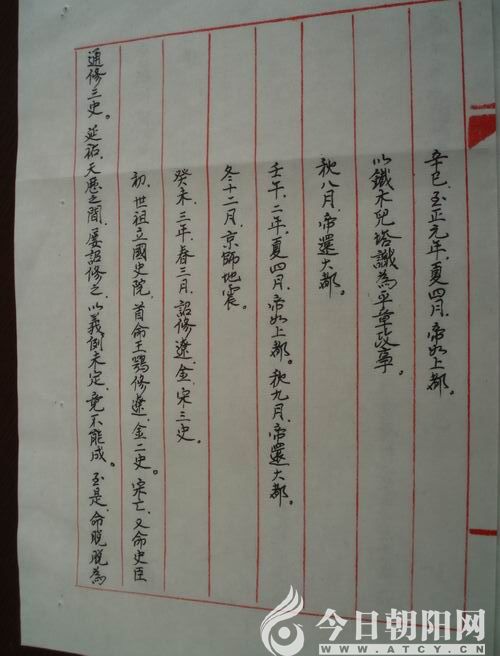張進(jìn)禮在擔(dān)任朝陽縣高中和朝陽縣實(shí)驗(yàn)中學(xué)黨總支書記期間,似乎業(yè)余時(shí)間比以前在校長崗位上充足了一些,他用硬筆書法抄寫古典名著的勁頭更足了。他在硬筆書法抄寫名著期間,努力克服身體和工作與生活各方面帶來的困擾,堅(jiān)持天天抄寫,達(dá)到了這頓飯可以不吃,而硬筆書法抄寫名著的事情卻不能有誤。他做這件事情時(shí),像干工作一樣嚴(yán)格要求自己,精益求精,刻意追求抄寫的質(zhì)量,并熟記名著的精彩篇章,把其名著的精髓牢記心間。他告訴自己的好朋友,說自己之所以能夠一直堅(jiān)持抄下去,就是想為年輕人樹立一個(gè)榜樣,告訴他們:“下定決心去做的事,就要用堅(jiān)強(qiáng)的意志和毅力去實(shí)現(xiàn)自己的目標(biāo)。”