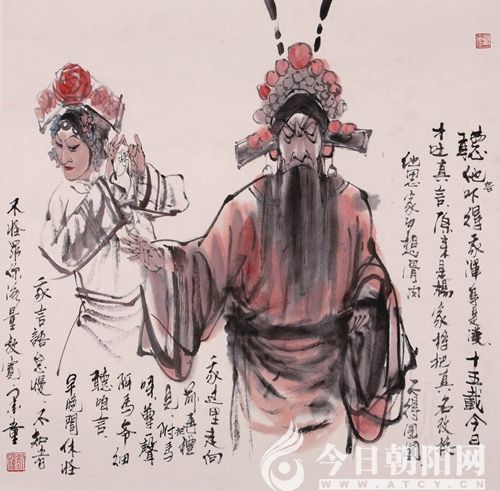 關(guān)注傳承中國傳統(tǒng)文化,用國粹演繹國粹。這是劉明禮先生適應(yīng)時代的需要,在題材選擇上的重大突破。京劇是中國的財富,也是全人類的財富,弘揚(yáng)和傳承下去,是每位藝術(shù)家的職責(zé)。劉明禮大膽探索,走了一條別人沒有企及的藝術(shù)之路。在創(chuàng)作上,他繼承傳統(tǒng)國畫創(chuàng)作方法,筆墨傳情,兼工帶寫,大膽創(chuàng)新,并借鑒西方素描造型技法,根據(jù)傳統(tǒng)京劇故事,創(chuàng)造出一個個生動形象的京劇人物,呈現(xiàn)出氣勢恢宏的大畫特征。中國畫是綜合的,不是單一的,中國畫的修養(yǎng)不僅是詩書畫印,還包括中國的武術(shù)、音樂、舞蹈、戲曲等。齊白石曾經(jīng)說過:我的印第一、詩第二、書法第三、畫第四。吳昌碩說:我的詩第一、印第二、畫第三。這說明有沒有這些修養(yǎng)是成不了國畫大師的,尤其是書法,書畫同源。因為中國的漢字是象形字,謂之心畫;另外,書法和繪畫都使用毛筆,繪畫有了書法的內(nèi)功,就會使中國畫不只停留在事物的表象層面。在劉明禮先生的《京劇》畫作中,你可以欣賞到他的書法、題款氣韻貫通,濃淡相宜,破立結(jié)合,方勁出塵,似畫非畫,隨畫而行,體現(xiàn)了靈動拙樸的特色,使抽象的漢字同樣具有國畫一樣的動感。