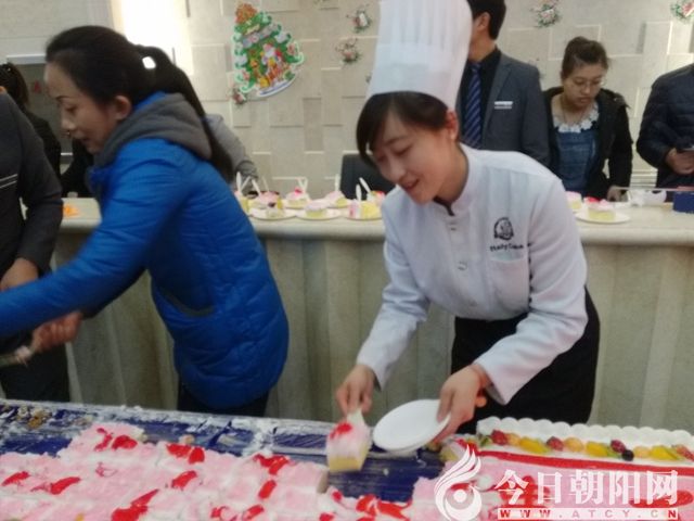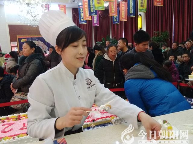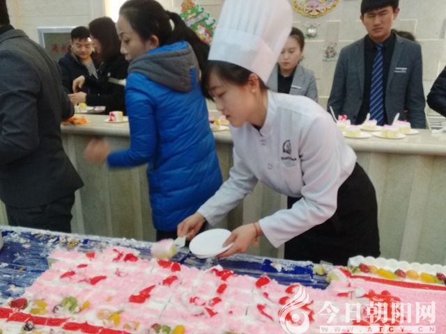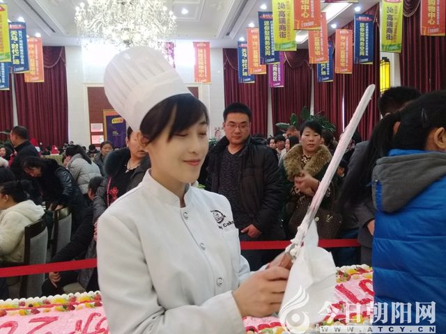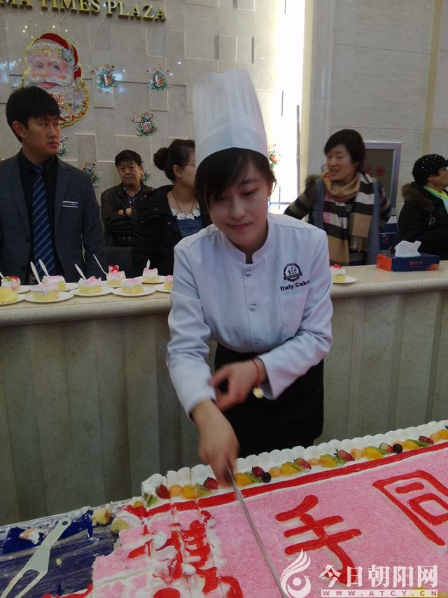 小編注意到,這位“蛋糕妹”手持長長的切刀,在長達(dá)5米的巨型蛋糕前辛勤勞作著。只見她頭戴潔白的糕點(diǎn)師帽子,嘴角含笑,手舞刀飛,很快將蛋糕切成均勻的、數(shù)百個(gè)方塊兒,然后再麻利地裝進(jìn)小盤子里,分發(fā)給現(xiàn)場(chǎng)的市民。