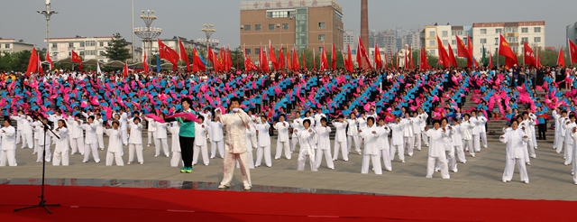 朝陽萬人開步走 走得大地都顫抖