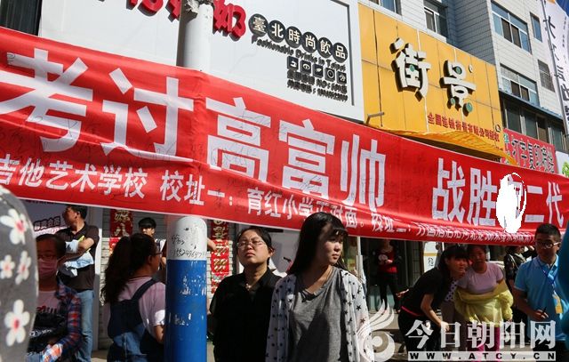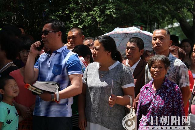 小編在朝陽市第二高中考點門外,隨機抓拍了幾個鏡頭:有家長們對孩子千叮嚀萬囑咐的,有焦急等待孩子出考場的,有情緒激動偷偷抹眼淚的,有給家人打電話解說情況的;有警察維持秩序、疏導(dǎo)人群的;有學(xué)生和家長一起候場的;有家長抱著小朋友前來助力的;有接送高考生出動專車的;有打出“考過高富帥、戰(zhàn)勝X二代”標(biāo)語并在上面簽字的;有一些企業(yè)趁機做廣告或祝愿學(xué)子金榜題名的……