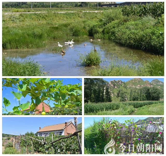 我出生在與劉杖子鄉(xiāng)一樣的青龍河畔,我老家那段青龍河因其從東向西流向?qū)儆谄浠亓鞫?,而穿劉杖子鄉(xiāng)而過的青龍河卻是青龍河上游,它是正常的自西向東流淌,但到劉杖子鄉(xiāng)見到青龍河依然讓我感到親切如故。她母親般哺育著兩岸的青山綠樹,她又慈父般潤澤著劉杖子廣袤的田野,讓這方土地水秀山青,五谷豐登,瓜甜果鮮。所見之處,孩童們在水里嬉戲玩耍,成群結(jié)隊的鴨鵝縱情游蕩、覓食,水中蒲草一團一簇,在微風中婀娜地搖曳與河水的微波產(chǎn)生共振,仿佛一場高貴典雅的舞會,曼妙優(yōu)美。岸邊的小村莊,人字形的瓦房居多,在綠樹叢中時隱時現(xiàn),玉米高粱谷子谷黍隨處可見,一處處葡萄園更是一個連著一個,葡萄園的主人巧用周邊地頭,種了波斯菊、向日葵作為點綴,最引人注目的是藤蔓交織的葫蘆架,胖乎乎的葫蘆憨憨地掛著,神態(tài)可愛,而不甘寂寞的牽?;ㄔ陲照献踊蚰竟骷芷鸬恼献由相朽星星?,大肆喧嘩。隔青龍河望去,古樸的村莊綠樹環(huán)繞,小橋下的流水依村逶迤而過,村莊透著靜謐和安詳。村口荷鋤的農(nóng)人互相打著招呼,有老人村婦坐在樹蔭下閑談,三兩稚童跑來跑去,“借與門前磐石坐,柳蔭亭午正風涼”,好一幅閑適恬淡的山村風光。