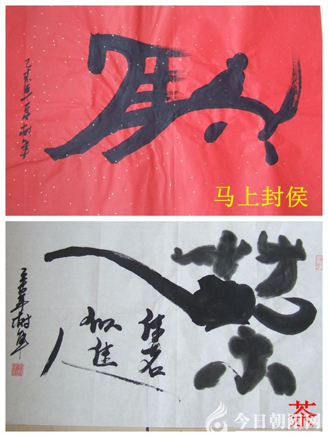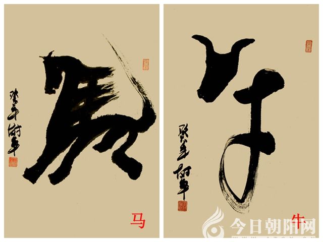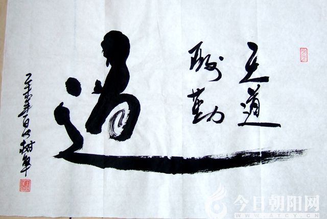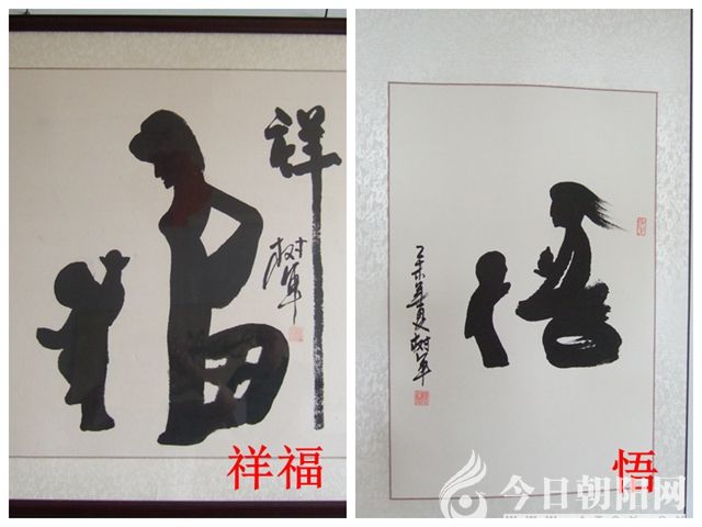 其次得益于王樹軍先生的想象力和創(chuàng)造力。王樹軍是個十分有心、用心綿密之人,這為他創(chuàng)作出絕妙的書畫同體作品創(chuàng)造了先天的條件。西漢文學家揚雄早就說過:“書為心畫。”是也,能把二者結合起來創(chuàng)作出高水準的作品,必然是一個相當細心并且具有很高人格力量之人才能做到。同時,王樹軍先生有著非凡的想象力和創(chuàng)造力。這與他是一個作家和小說家有關。一個小說家必定有十分出色的想象力和創(chuàng)造力,否則他絕不可能寫出小說來。王樹軍先生在書法中揉進繪畫藝術,則無疑更需要想象力和創(chuàng)造力。為什么會把“示”字想象成一個童子,把“畐”字想象成一位母親,真真不是常人所可以想象得出來的。正是王樹軍超高的想象力和創(chuàng)造力,從而使得他的書畫同體作品“不是詩卻有詩的韻味,它不是畫卻有畫的美感,它不是舞卻有舞的節(jié)奏,它不是歌卻有歌的旋律”(魯迅語)。