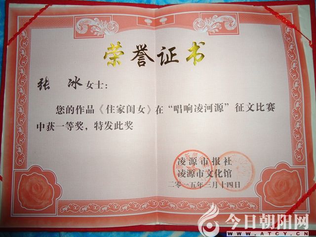 年初的時(shí)候,由遼寧省凌源市報(bào)社、凌源市文化館主辦的【唱響凌河源】有獎(jiǎng)?wù)魑拇筚愔?,俺的散文【住家閨女】受到了評(píng)委會(huì)的一致好評(píng),獲得了一等獎(jiǎng),還得了一點(diǎn)小獎(jiǎng)金,嘿嘿。前半年,參與了由國(guó)家作協(xié)主席鐵凝作序的長(zhǎng)篇小說(shuō)【敵后前哨】的創(chuàng)作,雖然作者上沒(méi)有俺的名字,但是參與的過(guò)程也是學(xué)習(xí)的過(guò)程。