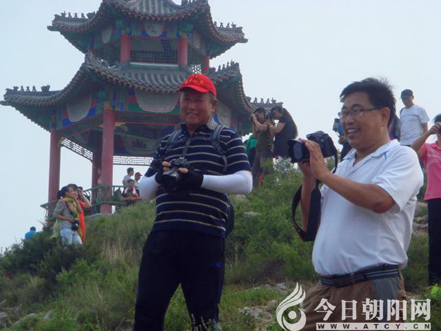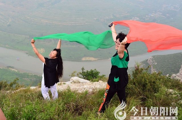 山頂上涼風(fēng)習(xí)習(xí),放眼望去,壯美、大氣的凌河第一灣盡收眼底。大凌河仿佛一條玉帶,托起兩岸碧綠的的田野山川,在山下劃起一道渾圓優(yōu)美的弧,弧外青山環(huán)抱,弧內(nèi)田疇整齊,寬闊平緩的河道里,波光粼粼,游船蕩漾,成群的野鴨在河面上嬉戲。游船上的笑聲隱隱傳來,大概是泛舟的人們抑制不住了“舟行碧波上,人在畫中游”的愉悅心情吧。