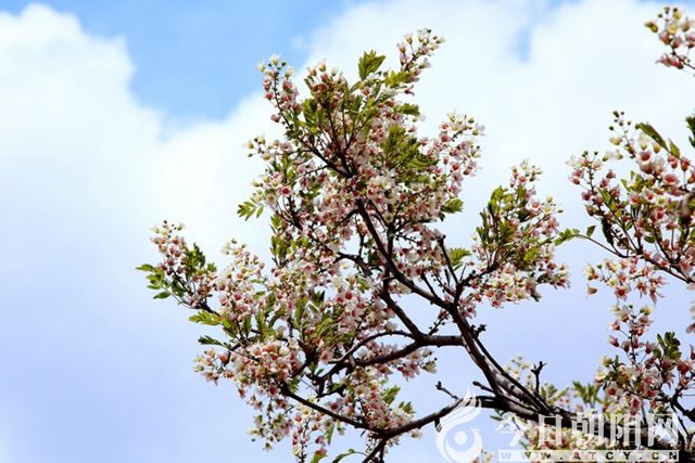 文冠果花,繁華似錦,如彩似綴,滿山遍野,開不盡,看不完。好花讓人百看不厭,好聽的鳥聲更是此起彼伏,似在唱和互答,布谷、喜鵲、云雀、黃鶯、斑鳩等鳥的身影不時掠過花叢,讓人追趕不及,來不及辨認它們的身份。