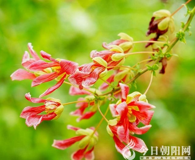 文冠果花期長達月余。從山腳到山腰,春天的腳步隨錯落多變的梯田式格局層級遞進,黃蕊、紅蕊的文冠果花次第竟相開放,讓人可以在一個多月內慢慢品嘗文冠果花的艷麗多姿。陣陣山風拂面,順風望去,花的漣漪擴散,撩撥得人心亦如花枝亂顫,令人嘆為觀止,華龍山的文冠果花絢爛之極。