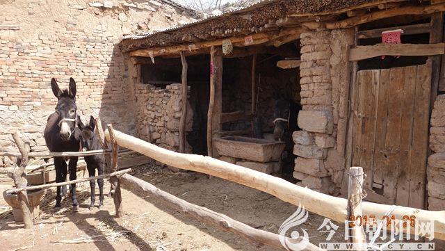 東山腳下,一戶六旬開外的苗姓村民家里,草料棚,牲畜圈,養(yǎng)著兩大一小長(zhǎng)耳朵毛驢。院門一側(cè)拴著只小黃狗,兩只小眼睛黑葡萄似的,見有生人進(jìn)來便“汪、汪”撒著歡地咬。土房山墻脊泥巴裂開了縫隙,房頂壓了一層石棉瓦,檐下掛著鋤頭、耙子等農(nóng)具。屋里拾掇的利整,縫紉機(jī)、掛鐘這些老物件還在沿用著。擦得一塵不染的老式箱柜上,立著一排墻鏡,兩側(cè)條鏡草書毛體黑字對(duì)聯(lián),其中一副是:“春風(fēng)楊柳萬千條,六億神州盡舜堯。”鏡框顏色有些晦暗,邊緣夾著兩排孫男弟女照片。女主人介紹,兒女都在溝外大的地方打工生活,只在年節(jié)帶了孫子孫女們回來,平時(shí)偌大家里就剩老兩口,村里其他人家也大抵如此,最興旺時(shí),村里有三十五戶人家三百四五十口,現(xiàn)在就剩下十多戶二三十口,而且都是五十歲以上的老人。主人說的平和,倒看不出心緒有幾多惆悵。傳統(tǒng)意義上的家園正在遭遇現(xiàn)代文明的誘惑和挑戰(zhàn),即便眼下有一批如苗氏老人們堅(jiān)如磐石的虔誠守望,又有誰敢保證不會(huì)有一天,承載我們精神和靈魂的棲息地將無處尋覓呢?!