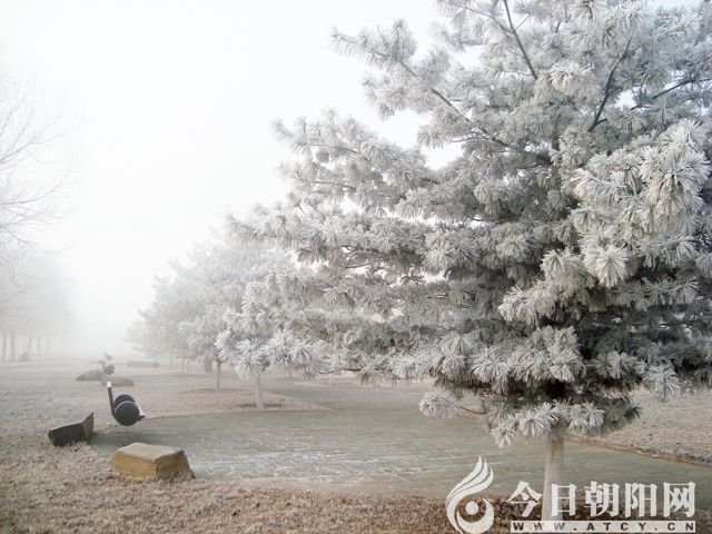 12月23日,朝陽大霧。騎行到大橋頭的時候,覺得能見度很差。耳能聽到唰唰的車響,可是十幾步外都看不太清楚??邕^欄桿,離開公路。“??!看樹掛。”小時候這樣喊過,現(xiàn)在,在心里喊了一下。晶瑩的樹掛——文詞兒現(xiàn)在叫霧凇,竟攪動了我的童心。