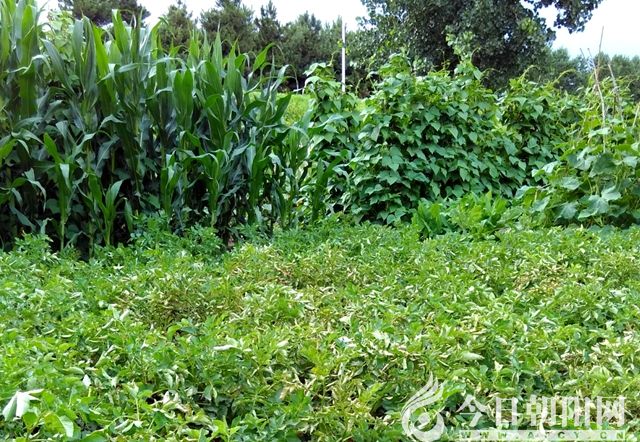 田園里,矮稞作物隱在架與架之間,一席子辣椒被豆角隔開后是一趟子一趟子的大蔥。然后是茄子,茄子的桿過于青紫,不過葉子厚實(shí),小茄子頂著蘭花,像是經(jīng)過精心打扮。地瓜的面積略大,有二分地,估計(jì)種植者偏愛此物。地瓜工兵鏟形的葉子很具特色,秧一律站垅背,和土豆花生保持一定距離,怕果實(shí)搞地下活動(dòng)。