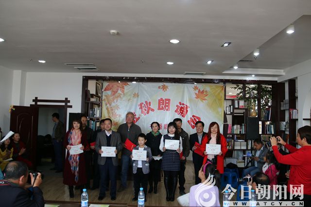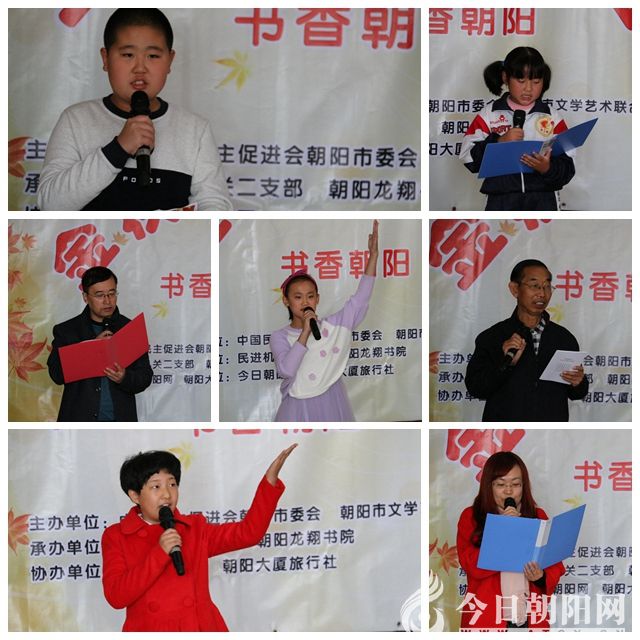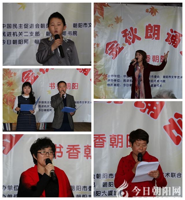 原來,由中國(guó)民主促進(jìn)會(huì)朝陽(yáng)市委、朝陽(yáng)市文聯(lián)主辦,民進(jìn)機(jī)關(guān)二支部、朝陽(yáng)龍翔書院承辦,《今日朝陽(yáng)網(wǎng)》、朝陽(yáng)大廈旅行社協(xié)辦的“書香朝陽(yáng)”金秋朗誦會(huì)正在這里火熱舉行。來自全市各條戰(zhàn)線的百余位書友、文友以及詩(shī)朗誦愛好者歡聚一堂,以飽滿的激情參與了這場(chǎng)精神盛會(huì)。