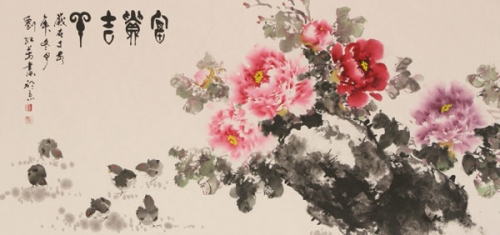 筆墨當隨時代。她認為,傳統(tǒng)是變化發(fā)展的活的生命體,作為民族的非物質文化形式,繪畫也必將隨著時代的發(fā)展而變化;而這種變化絕不能丟掉民族藝術的個性特色,以顛覆傳統(tǒng)藝術、迷失文化精神為代價。從這個意義上講,劉紅芳的牡丹花鳥所歌頌的盛世和諧、國強民富、家庭幸福美滿是有現(xiàn)實基礎的,展示的是時代的需求,是對美好生活的憧憬,符合歷史的發(fā)展規(guī)律。她用筆奔放,用墨甜潤,在寫實中追求凝重,在平淡中呈現(xiàn)意趣。傳統(tǒng)的筆墨新,還在于形象的內涵新;情與景的深化,在于藝術家賦予對象自身的感受與理想。她的《畫好月圓》、《富貴相伴》、《和諧之春》、《富貴同春》等諸多作品都表達了這樣的主題,畫中形象都具有濃郁的時代氣息和人文關懷。劉紅芳正是巧妙地通過這些牡丹來表現(xiàn)人,通過這些花鳥的情性來表現(xiàn)人性。她的牡丹畫作透露出藝術家對這個時代生活的真實感受,謳歌的是時代向上的精神,表現(xiàn)的是樂觀的生活情趣與意念。