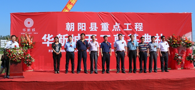 2015年8月13日,由遼寧華新集團(tuán)開發(fā)的房地產(chǎn)項(xiàng)目——“華新城”,在遼寧省朝陽縣新縣城舉行了隆重的奠基儀式。朝陽市、縣相關(guān)領(lǐng)導(dǎo)及有關(guān)部門負(fù)責(zé)人參加了此次活動(dòng)。朝陽縣人民政府代縣長劉力東宣布項(xiàng)目開工。