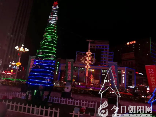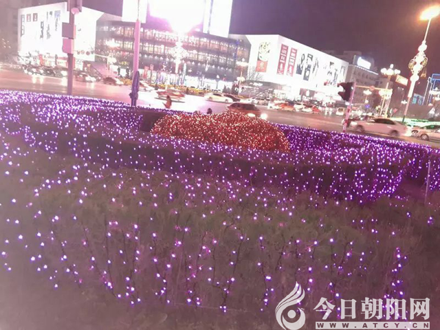 前行到了新華廣場。此處是朝陽大街與新華路的交匯處。十字交叉路口的四盞路燈上高高懸掛著大大的中國結(jié),氣宇軒昂,眩人眼目。再看每個路燈下的大片花的海洋,更是讓你流連忘返。站在藍(lán)色的燈海里,你猶如在碧波蕩漾的大海上欣賞著海市蜃樓;在紅色的燈海里,你猶如在早春的紅梅中穿行;站在綠色的燈海里,猶如在茂密的林海里愜意散步;在紫色的燈海里,你猶如在花海里徜徉。穿行燈海后,再來看朝商集團(tuán)門前的燈塔,在夜幕下更是奪人眼目。
