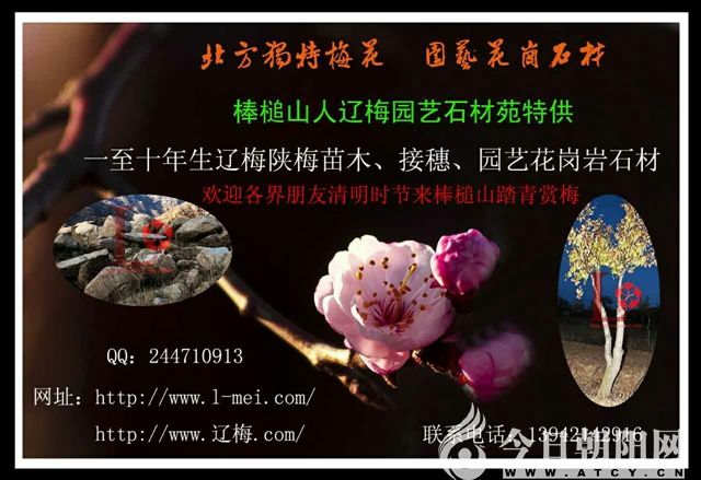 棒槌山人遼梅園藝石材苑位于遼寧省北票市大黑山腳下的棒槌山村,現(xiàn)有二至多年生遼梅苗木幾千株以及大量園藝花崗巖石材,等待有緣人。有意者可以電詢13942142916,或登錄網(wǎng)站www.遼梅.com查找相關(guān)資料。