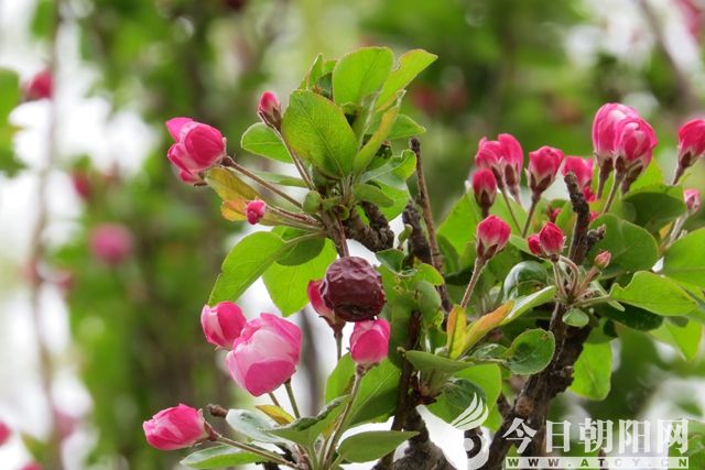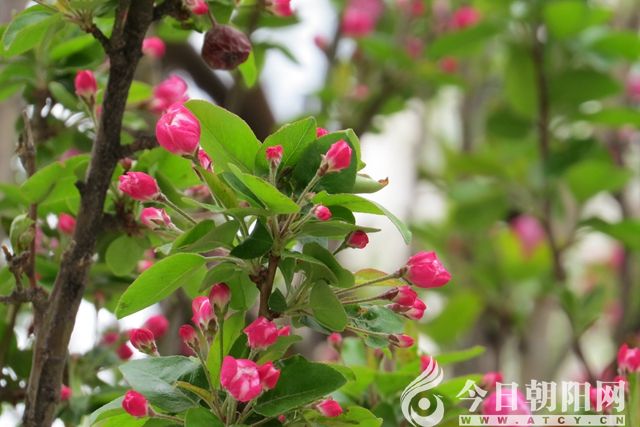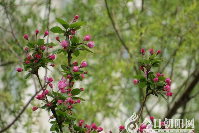 朝陽(yáng)海棠花“小蕾深藏?cái)?shù)點(diǎn)紅”的狀態(tài),大致是在陽(yáng)歷四月上旬稍靠后一些的時(shí)候,而那時(shí)朝陽(yáng)城里的玉蘭、山桃、連翹早已開(kāi)過(guò),杏花、李花、榆葉梅則開(kāi)得正盛,的的確確正“鬧春風(fēng)”呢!