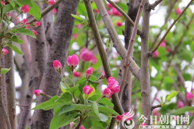 朝陽(yáng)市內(nèi),大家知道得多的,是珠江轉(zhuǎn)盤南邊國(guó)稅局門前的三棵海棠樹(shù):東邊兩棵,西邊一棵。這長(zhǎng)在繁華鬧市的三棵海棠,長(zhǎng)年受著喧囂市井氣息的鬧擾,不開(kāi)花時(shí)人們幾乎不見(jiàn),就是開(kāi)花時(shí),人們?nèi)タ矗惨驗(yàn)橹苓叿諊牟簧鹾椭C,不能盡善盡美地欣賞到海棠開(kāi)花的妙處。但海棠終究還是海棠,若是看花的人不觀瞻樓宇,不留意車流,不側(cè)耳市聲,單單專注樹(shù)上的海棠花朵,那花朵的嬌妍氣質(zhì)是分毫不減的。滿樹(shù)的海棠花,仿佛有自己堅(jiān)定的思想和操守,雖然與流俗大勢(shì)不合,但是依然能夠美麗而倔強(qiáng)地燦然開(kāi)放。