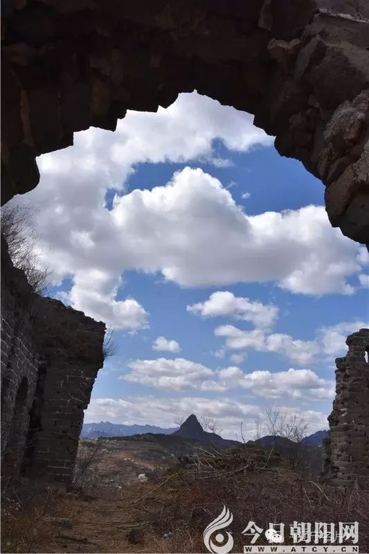 古長(zhǎng)城廢墟之上,雖然晴空萬里陽光明媚,卻有朵朵祥云繚繞。古月照今朝,日月輪轉(zhuǎn),萬里長(zhǎng)城今猶在,見證著時(shí)代更迭,歲月穿梭。撫今追昔,稀疏流離的明代古長(zhǎng)城歷盡蹉跎歲月,令人充滿懷古情懷。