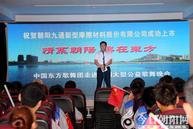 7月12日下午,中國東方歌舞團走進朝陽,以“情系朝陽·美在東方”為主題,熱烈祝賀朝陽九通新型摩擦材料股份有限公司成功上市。演員們以飽滿的熱情,高超的才藝,演繹了情系東北老工業(yè)基地、關愛朝陽人民的樸素情懷。九通公司董事長閆久龍在言簡意賅的致辭中,表達了務實進取、再接再厲、共克時艱、勇攀高峰的誠摯心愿,引起了多家新媒體的密切關注。