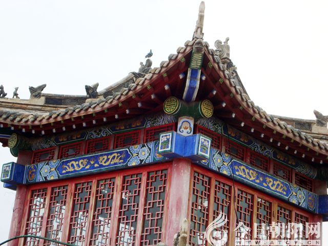 喀喇沁鎮(zhèn)里的妙吉寺,是著名的喇嘛寺院。藏傳佛教特色很明顯。據(jù)介紹前面的羅漢殿是古建筑,中間的大雄寶殿是2006年建成。大雄寶殿前的一株側(cè)柏似有三百多年。值得一記的是黃財神殿,妙吉寺內(nèi)供奉的黃財神東北最大。黃財神,藏名占巴拉·色波,因其身膚黃色,故稱為黃財神。 是密教護法神祗,五姓財神之首。藏傳佛教各大教派普遍供養(yǎng)。黃財神上身袒露,下身著裙,右手持如意寶珠,象征寶光普照十方,增添眾生的福報;左手抱一只大貓鼬(吐寶鼠),鼬的嘴里含著珠寶,象征財寶。左腳踏一只白色海螺,象征著他能入海取寶。以如意姿勢安坐于蓮花月輪座上。