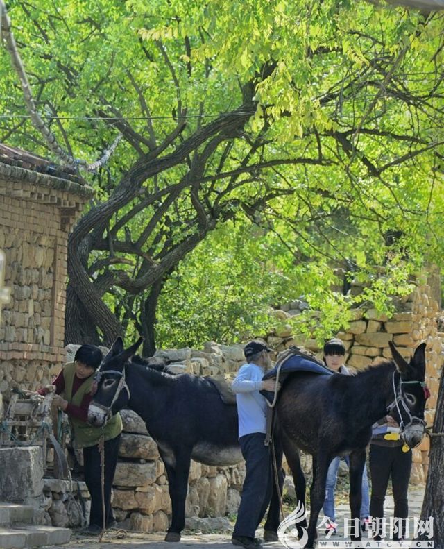老邢和老伴在家門口套驢,來探親的外孫媳婦站在旁邊看著……