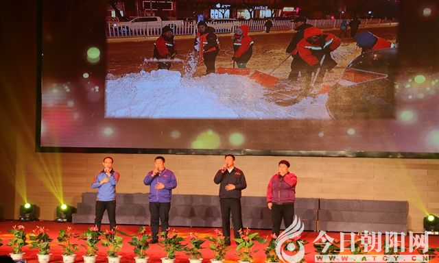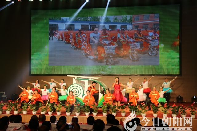 會議結(jié)束后,專場文藝演出在朝陽市環(huán)衛(wèi)局舞蹈隊表演的《花開千萬家》中拉開了帷幕。依次演出了環(huán)衛(wèi)系統(tǒng)各單位精心準(zhǔn)備的14個節(jié)目。其中,舞蹈《最炫小蘋果》、小品《公廁保潔員的一天》、情景歌舞表演《美麗心靈》等節(jié)目的取材,均來源于真實的故事。這些節(jié)目充分體現(xiàn)了環(huán)衛(wèi)工人不怕苦、不怕累的精神,和在平凡的崗位上以扎實的工作、默默的勞動實現(xiàn)自己人生價值的高尚情懷。小品《圓夢》,講述了政府有關(guān)部門幫助環(huán)衛(wèi)女工的孩子(單親家庭)上大學(xué),孩子表示畢業(yè)后也加入環(huán)衛(wèi)工人隊伍的感人故事,深深感動了在場的觀眾。