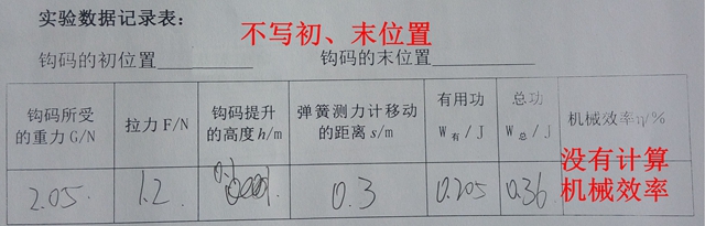 4、現(xiàn)象:不填寫(xiě)鉤碼的初位置與末位置,或者只寫(xiě)數(shù)值不寫(xiě)單位;(如圖3-2、圖3-3)